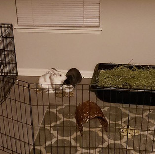 SENIOR BUN TIP: If you have a rabbit who cannot get into a traditional litter box, you do have options. We convert the entire bathroom side of the cage with pee pads at the bottom and fresh hay on top. Rabbits tend to pee and poop where they eat so thats why we can use this as a trick to help keep messes at bay.